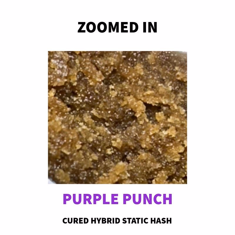 Aroma: 🍇 Purple Punch 90/125u Static Hash offers a sweet, grape-candy fragrance blended with blueberry, vanilla, and creamy dessert notes. Beneath the sugary top layer lies a soft earthy undertone, creating a rich, soothing aroma reminiscent of freshly baked berry pie.